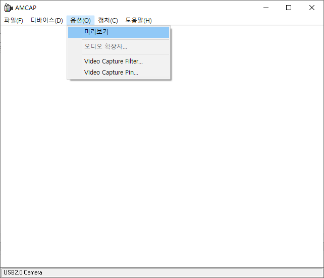 다운로드한 웹캠 테스트 프로그램 AMCAP.exe 을 실행합니다